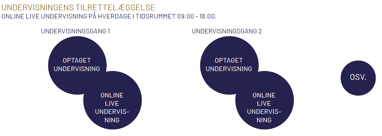 Optaget undervisning er professionelt optagede videoer, som du kan følge fleksibelt i en afgrænset periode.