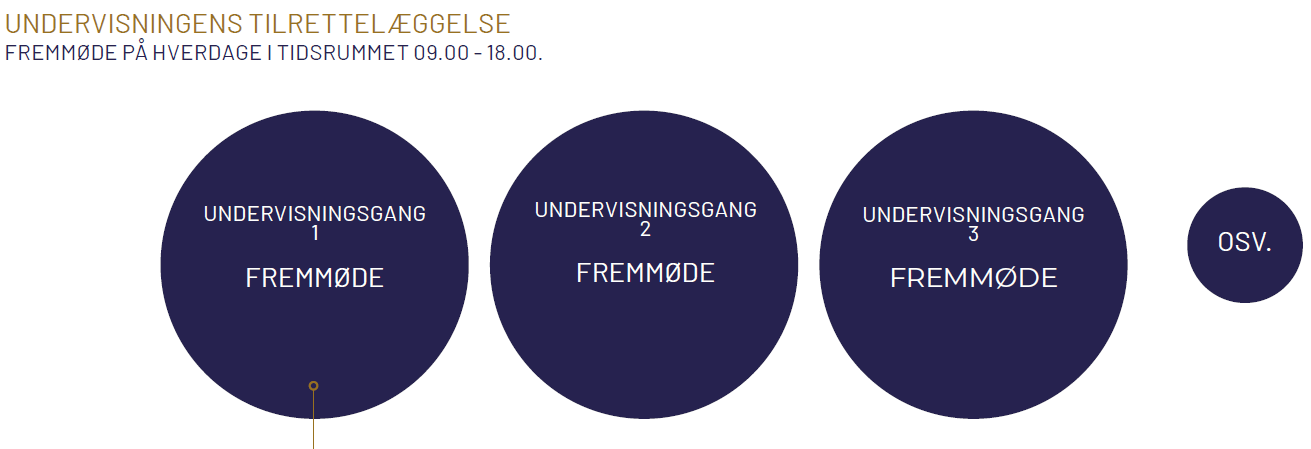 Der er forskellige tilrettelæggelser af undervisningsgangene afhængigt af, om du følger fremmøde- eller onlineundervisningen.