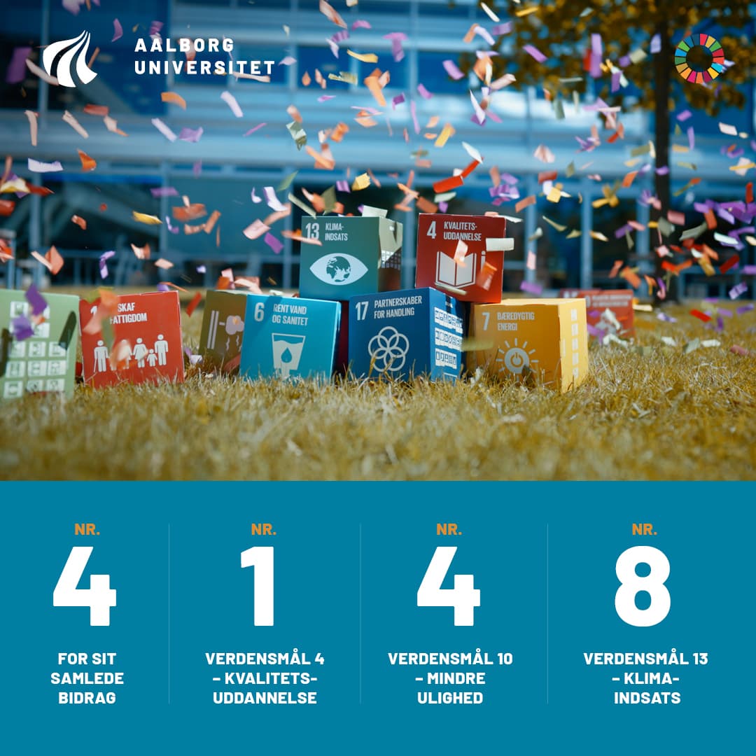 AAU er et førende universitet, når det gælder om at understøtte en balanceret og bæredygtig udvikling* af kloden. Universitetet arbejder med udgangspunkt i strategien ”Viden for verden” aktivt og ansvarligt for at bidrage til bæredygtig udvikling gennem uddannelse, forskning, samarbejde og ved at reducere miljøpåvirkningerne fra AAU’s drift og ved at fremme ligestilling og socialt ansvar.