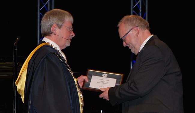 Med tildelingen af æresbevisningen Honorary Fellow ønskede AAU at påskønne den uvurderlige indsats, som mange af universitetets samarbejdspartnere gør for at fremme forskning, uddannelse og samarbejde med det omgivende samfund til glæde for Danmark og specielt Nordjylland.